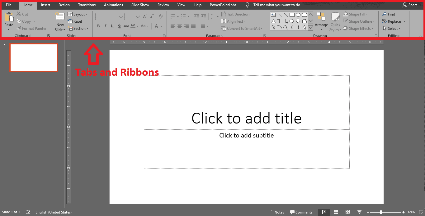 Regroupe les actions de base : ajout d’une nouvelle diapositive, formats de texte, couleurs, disposition. C’est la boîte à outils générale du contenu.