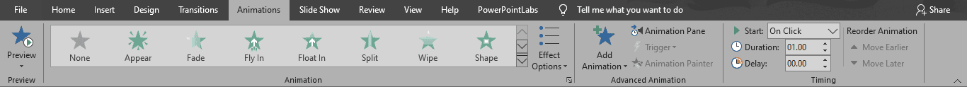 Contrôle l’apparition des éléments dans la diapositive. Il est possible de faire apparaître du texte point par point, ou de donner un effet d’entrée à une image. Il convient cependant d’être mesuré : trop d’animations risquent de distraire le public et d’alourdir la présentation.