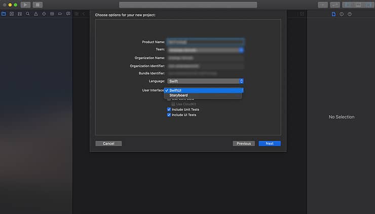 À cette étape, vous avez le choix du mode d’interface : SWIFTUI ou Storyboards. Chacun a sa logique, son style.