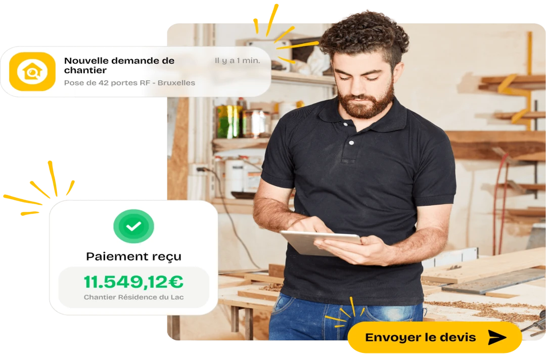 Vous êtes sur chantier, le client veut signer son devis. Avec la signature électronique intégrée, c’est réglé en deux minutes sur tablette. Le document part par email dans la foulée, archivé automatiquement.