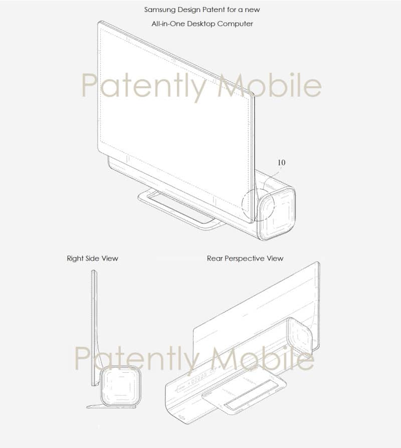 L’USPTO a également accordé à Samsung un brevet de conception pour un ordinateur de bureau tout-en-un. Il s’agit d’un écran fixé à un petit boîtier arrondi, qui doit contenir les composants du CPU. Il convient de mentionner ici que les brevets de conception ne se transforment pas toujours en produits réels, et il n’y a aucune garantie que l’un ou l’autre de ces brevets fera l’affaire. Alors ne mettez pas trop d’espoir dans aucun d’entre eux.