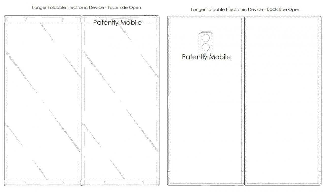 Le deuxième brevet de modèle concerne une tablette pliable qui se replie vers l’intérieur. La tablette peut être pliée en un appareil de la taille d’un smartphone. L’idée est de donner à l’utilisateur un grand écran et en même temps, rendre l’appareil assez portable pour le transporter dans une poche. PatentlyMobile dit qu’il y avait aussi une conception d’appareil plus longue qu’ils ne pouvaient pas traduire en graphique. Ils pensent qu’il s’agit d’un autre modèle de tablette pliable.